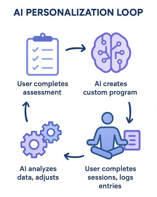 Second, the AI analyzes this data alongside session completion rates and user feedback to adjust program recommendations.
